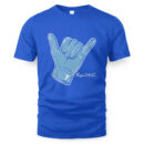 Clean Design with Edge: Minimalist type paired with a stylized shaka hand for instant recognition.