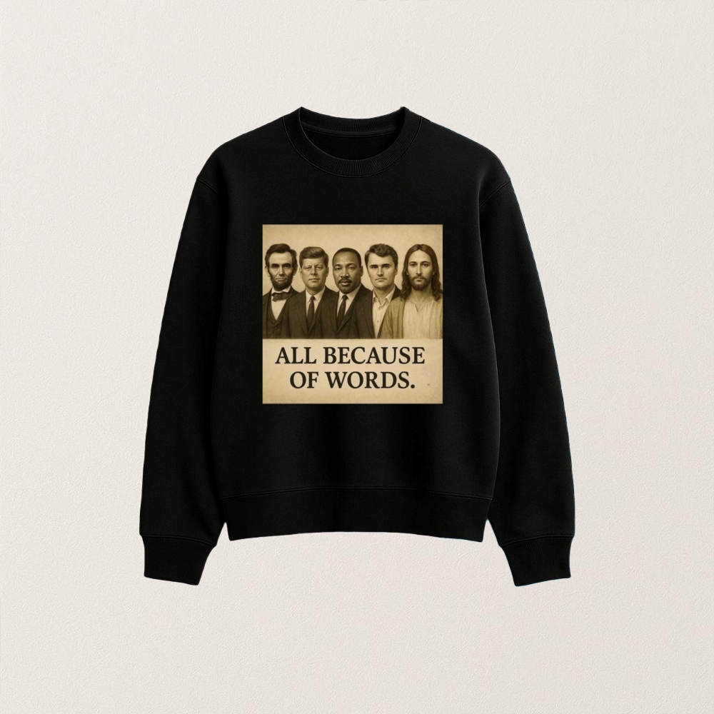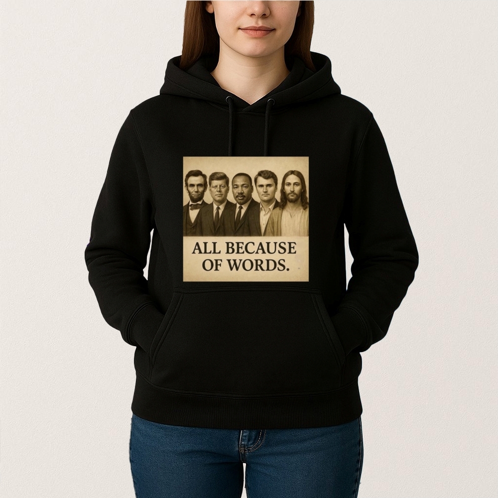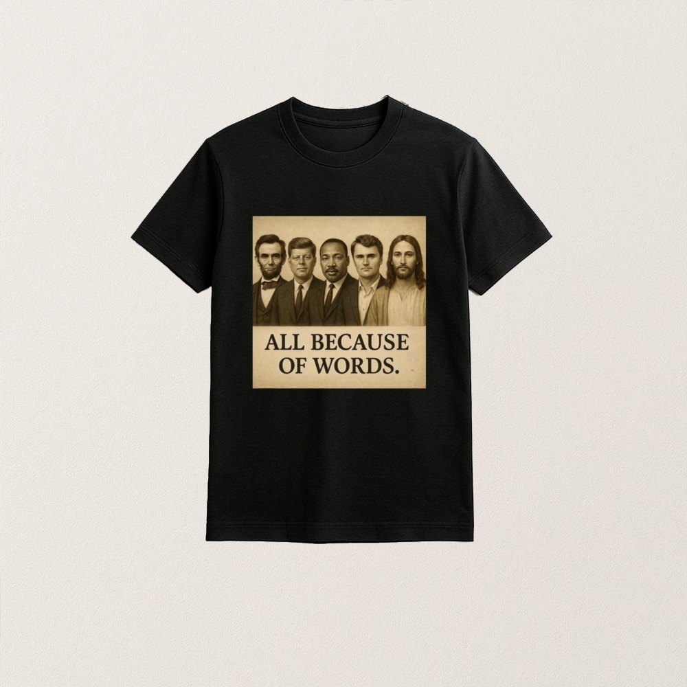 Check out more [Charlie Kirk All Because Of Words T Shirt] to complete your collection and stay on trend with fresh designs. From casual outings to everyday wear, these pieces are the perfect addition to any wardrobe.
