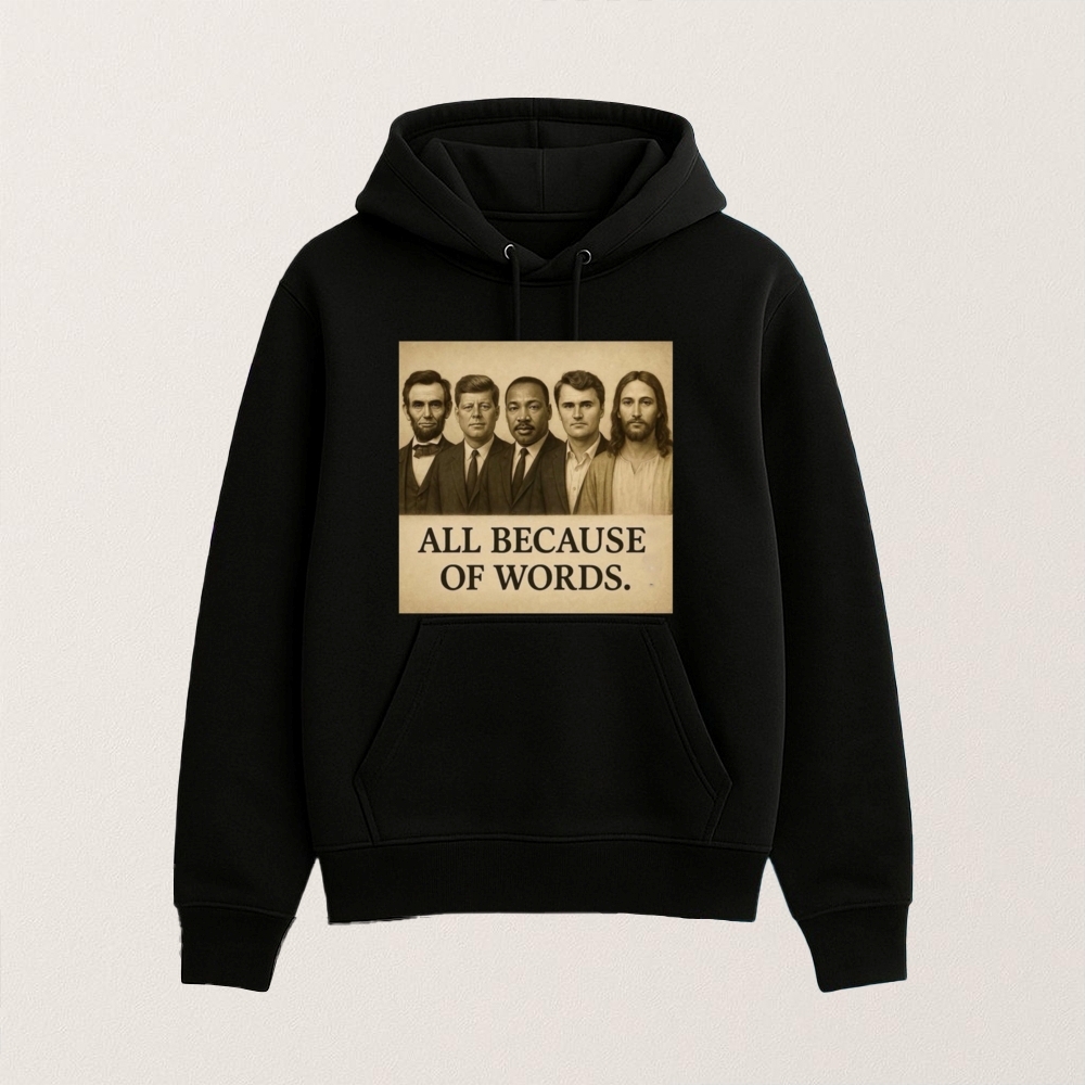 Whether you’re running an online store, designing a team shirt, or looking for a reliable blank to showcase your artwork—this One of Charlie Kirk’s products is the “All Because Of Words” T-shirt. gives you the quality foundation you need.
