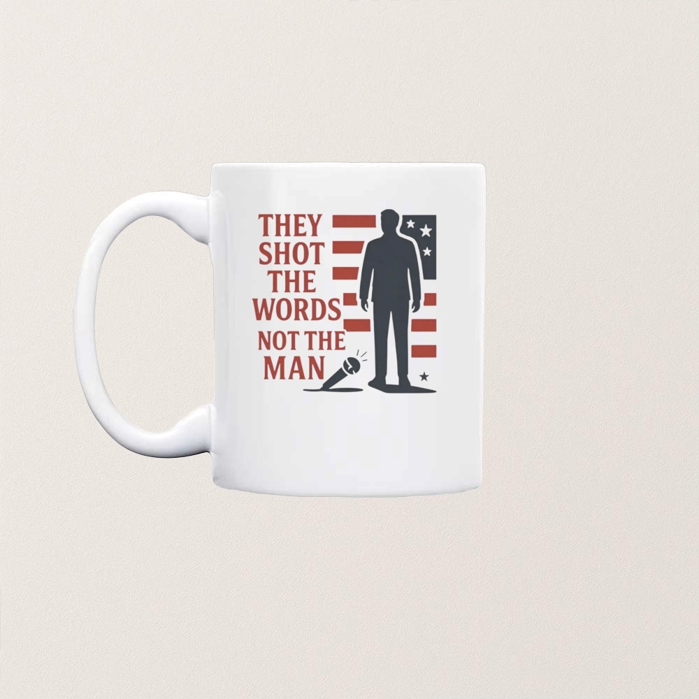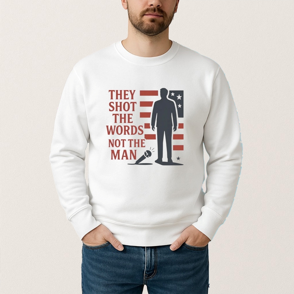 The “They Shot The Words Not The Man” T-shirt associated with Charlie Kirk reflects a broader historical context of political discourse and free speech debates in the United States. Charlie Kirk, a prominent conservative activist and founder of Turning Point USA, has been a polarizing figure, often sparking discussions on college campuses and in media about conservative values and free expression. The phrase on the T-shirt likely alludes to the idea that while individuals may be targeted or criticized, their ideas and words continue to resonate and influence public debate. This concept has been a recurring theme in American history, where figures from various political spectrums have faced opposition, yet their messages endure. The T-shirt symbolizes the ongoing cultural and ideological battles that capture public attention, often leading to creative expressions that encapsulate these contentious dialogues.