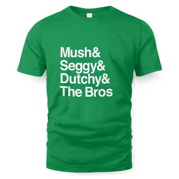 Design: Full-front collage featuring Mush, Seggy, Dutchy & Co. in a bold frame with clean type — optional jersey numbers or subtle star accents.