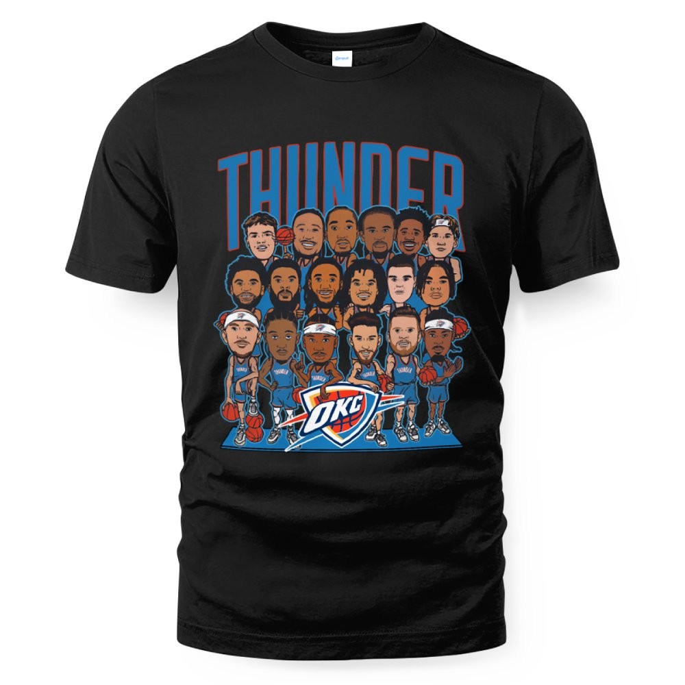 Oklahoma City Thunder 2025 NBA Finals Cartoon Roster T-Shirt