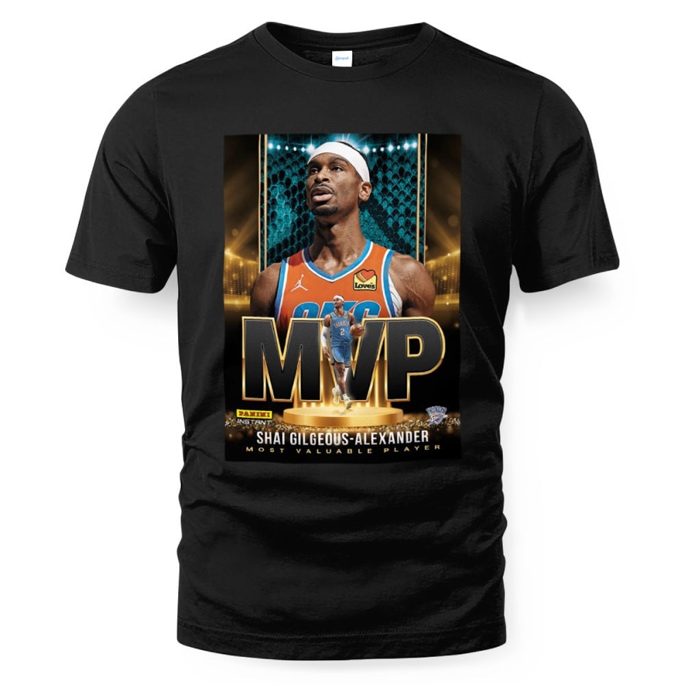 Witness greatness made wearable with the Shai Gilgeous-Alexander 2025 MVP Oklahoma City Thunder Poster T-Shirt – a high-impact tribute to the smoothest killer in the league. This shirt isn’t just merch, it’s a certified “I was there” moment for true believers in SGA.